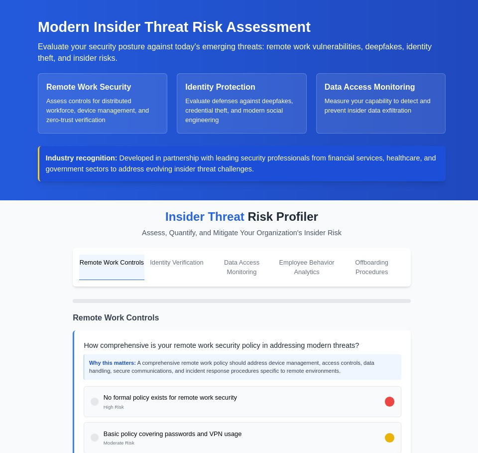 Insider Threat Risk Profiler | Modern Security Assessment Tool